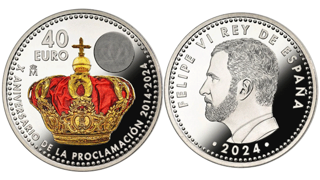 MONEDA DEDICADA a celebrar el «X Aniversario de la Proclamación de Su Majestad el Rey Felipe VI 2014-2024» |