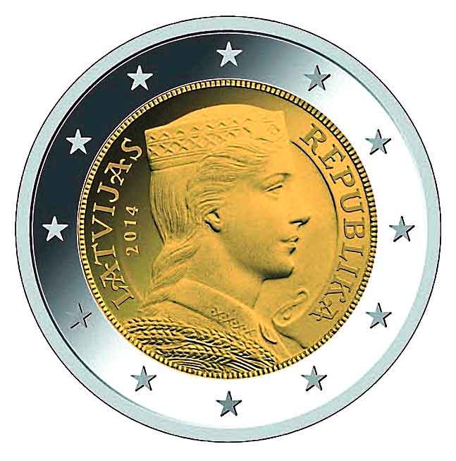Descripción del motivo: La imagen central de la moneda muestra la silueta de Riga y el centro histórico de la ciudad, que ha sido incluido en la lista de lugares declarados Patrimonio de la Humanidad por la UNESCO. En la parte superior de la imagen figura la inscripción «EIROPAS KULTURAS GALVASPILSETA» (Capital Europea de la Cultura) y, en la parte inferior, el nombre de la renombrada ciudad y el año de emisión, «RIGA — 2014», y debajo, la indicación del país emisor, «LV». En la corona circular de la moneda figuran las doce estrellas de la bandera europea. |